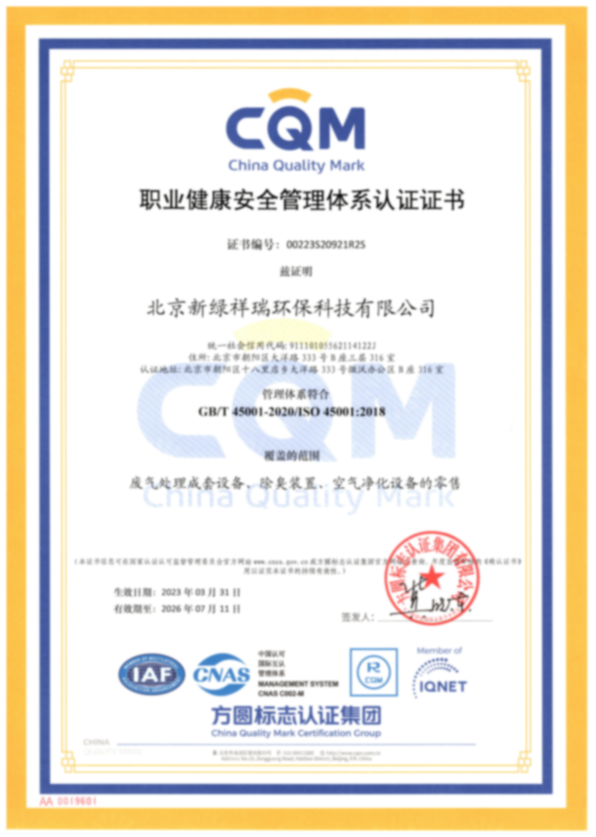 環境管理體系證書